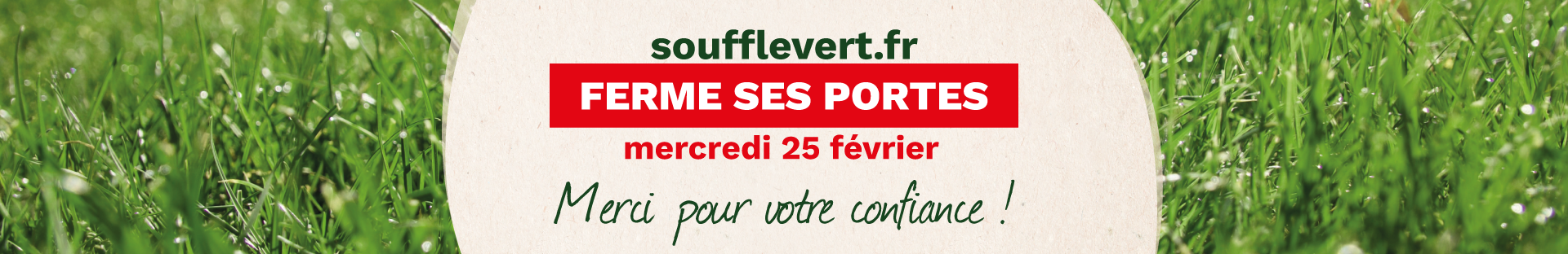 Le site Souffle Vert ferme ses portes le 25 février 2025. Toute l’équipe vous remercie de votre confiance et de votre fidélité. Toutes les commandes seront suivies et traitées, les retours produits éventuels aussi. Le site sera inaccessible dès jeudi 26 février.